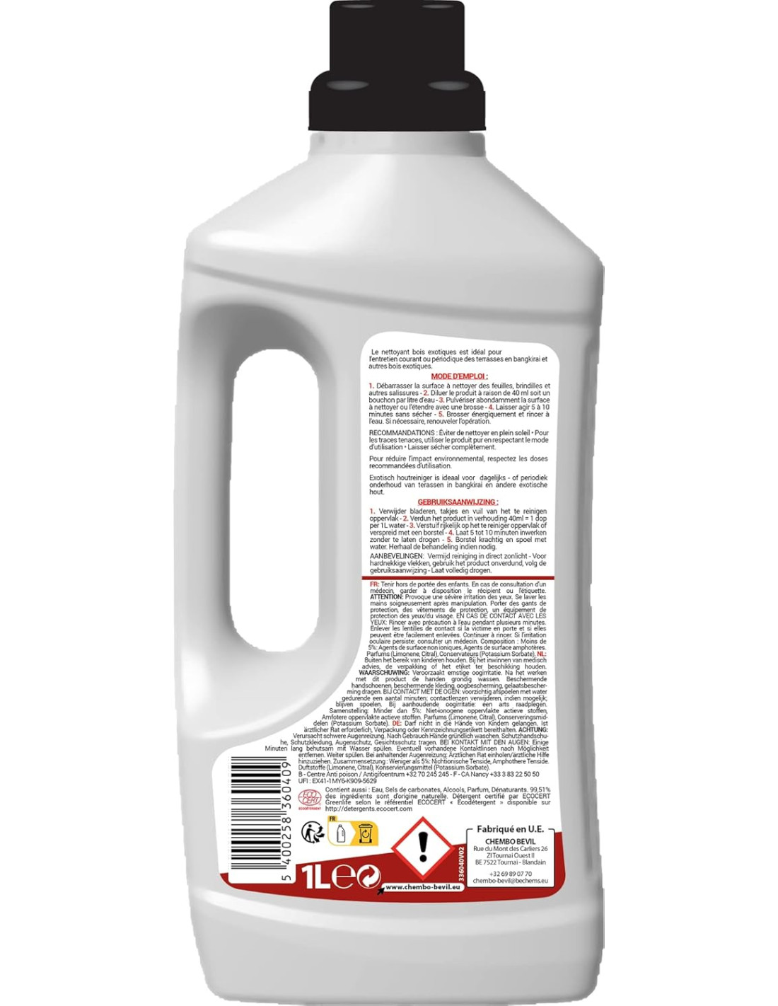 Le nettoyant bois exotiques est idéal pour l’entretien courant ou périodique des terrasses en bangkirai et autres bois exotiques.
