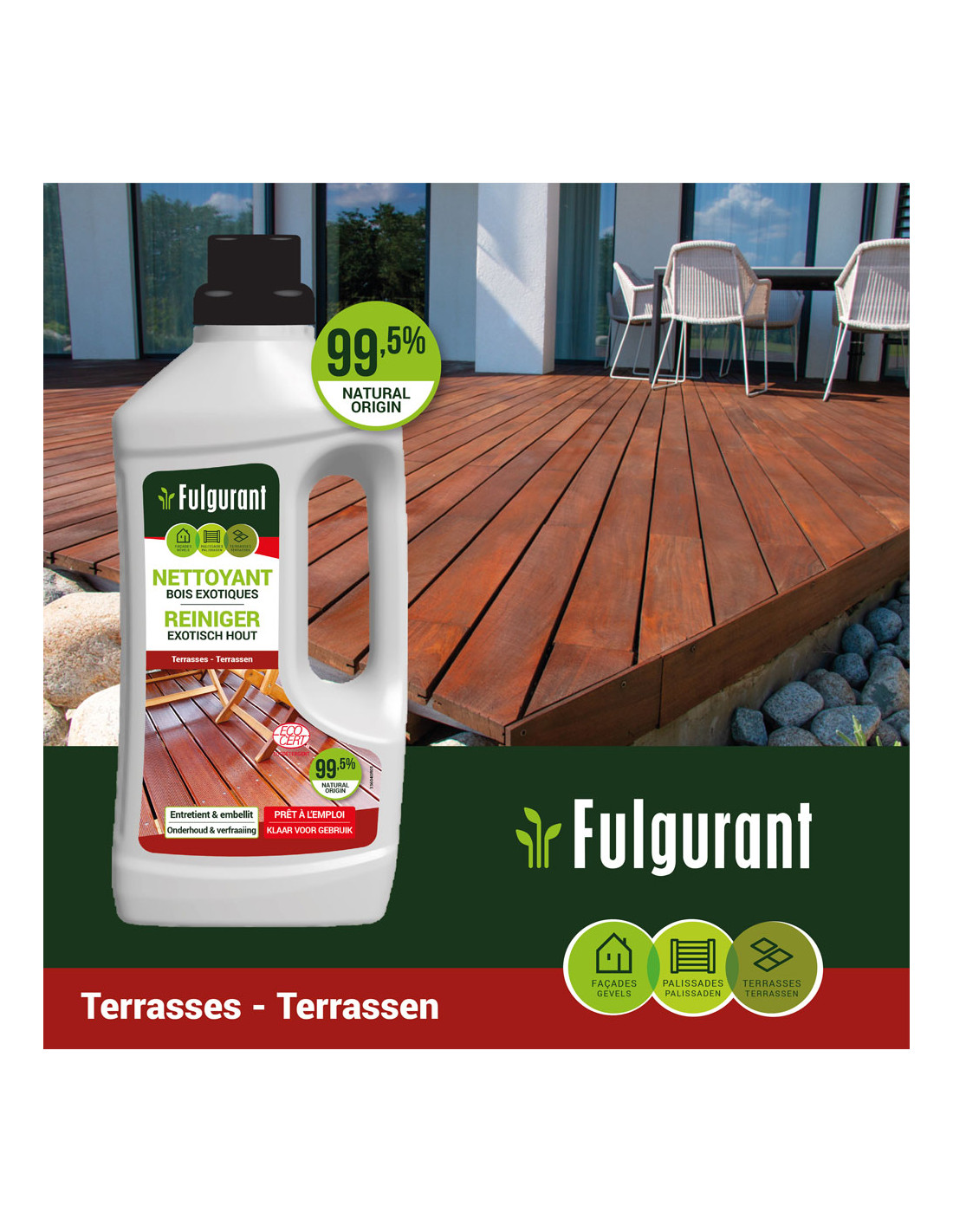 Le nettoyant bois exotiques est idéal pour l’entretien courant ou périodique des terrasses en bangkirai et autres bois exotiques.