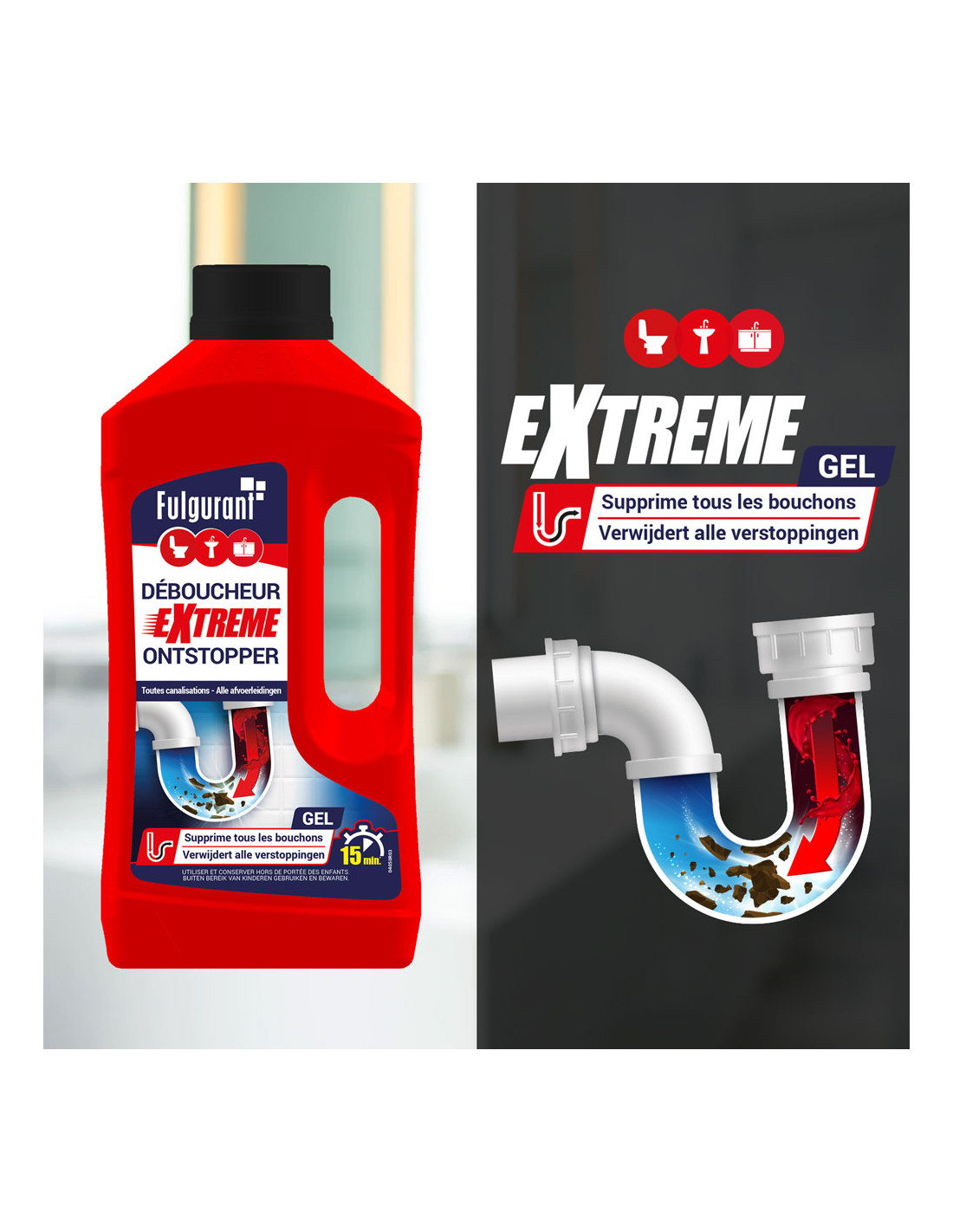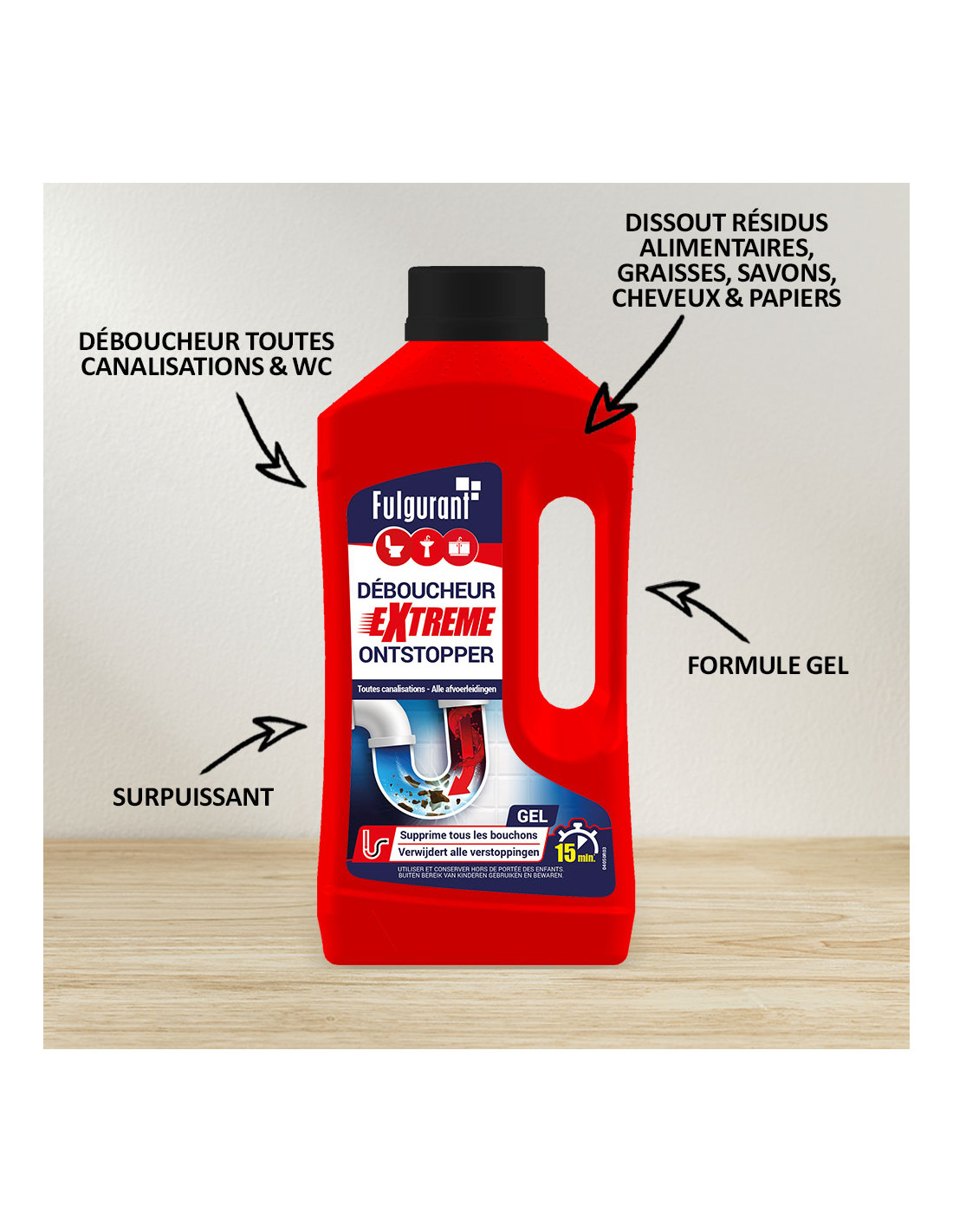 · Déboucheur surpuissant pour toutes canalisations et WC